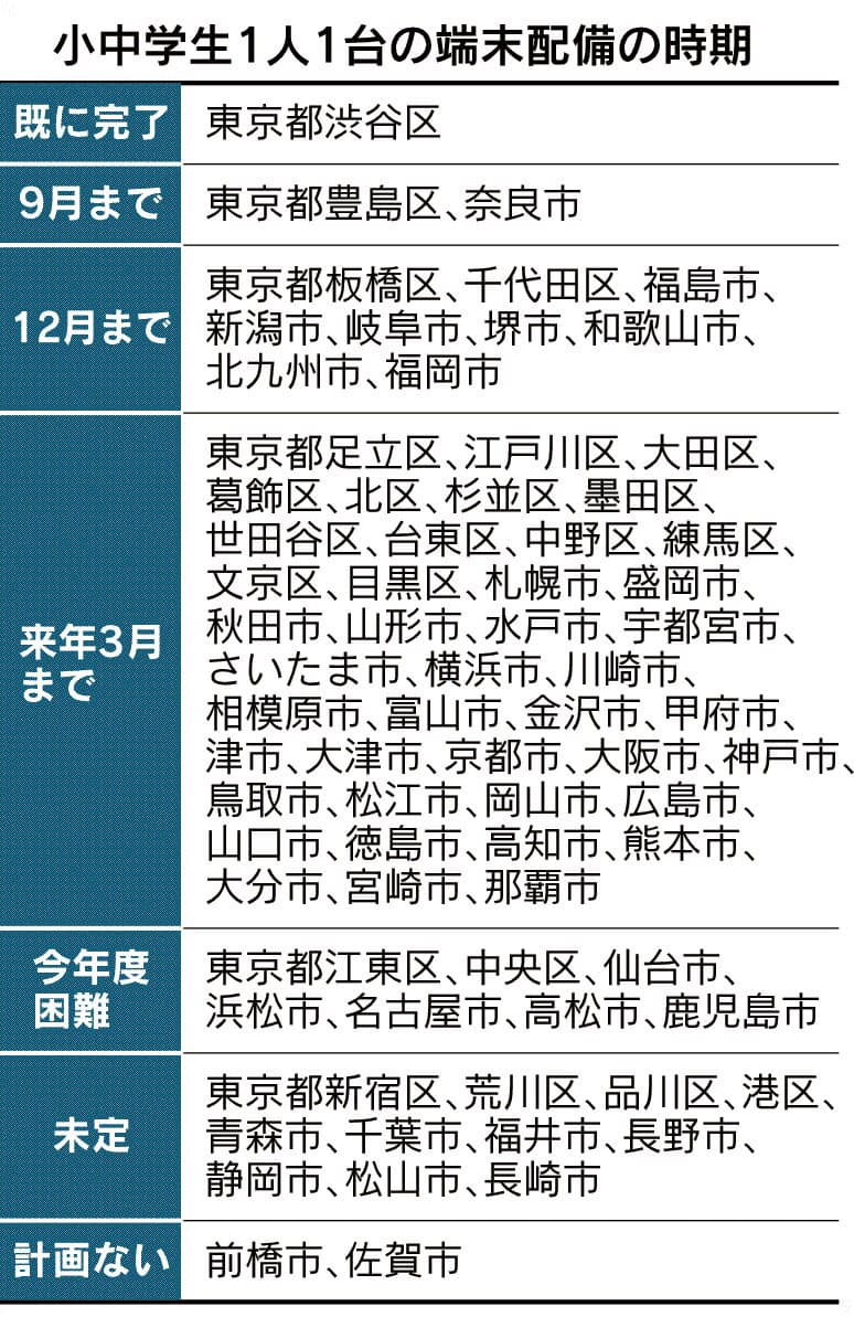 遠隔学習 端末配備に遅れ 主要市区調査 日本経済新聞