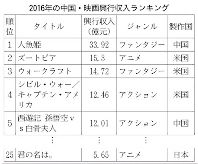 16年上期の国内における外国映画興行収入ランキングトップ10だそうです 哲2のブログ